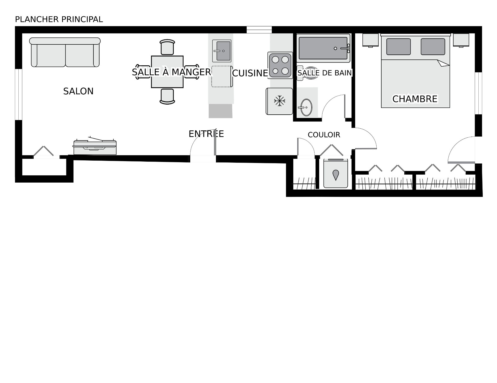 salon, la salle à manger et la chambre, apporte chaleur et